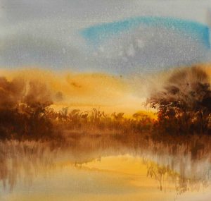 Horizon-In-The-Twilight-Watercolour-Painting45-cm-x-48-cm