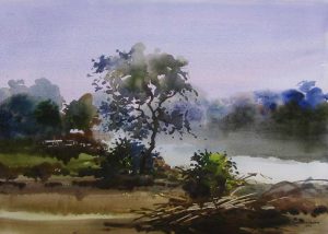 Winter-Morning-Brahmaputra-Riverside-Watercolour-Painting-45-cm-x-64-cm