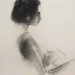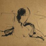Cat With Woman, Charcoal & Pastel, 38 cm x 50 cm -